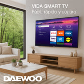La DAW50UR de Daewoo es ideal para quienes buscan una pantalla grande, moderna y con acceso inmediato a sus contenidos favoritos, todo en un diseño elegante y funcional.